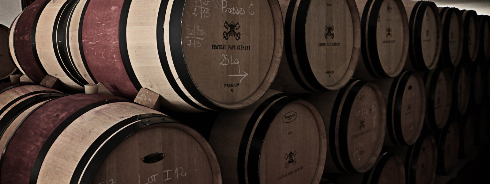 The Barrel Room at Château de Pressac in St. Emilion, Bordeaux. This is where the final aging process takes place before bottling. During the aging process, barrels lose wine to evaporation (called the Angel’s share). This requires the barrels to be topped-off to minimize the wine’s contact with oxygen, which can damage the wine.